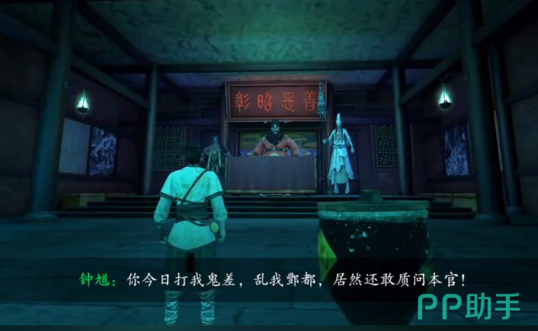 顺着小怪的方向一路往前走,小伙伴们会发现自己来到了判官殿前,直接走进去就可以了,钟馗就坐在这里的大殿之上等你。从形象上来看,钟馗与传说中的形象和性格都是比较贴切的。由于你一路上打了他的不少手下,所以一开始钟馗大人对你感到十分愤怒。而此时正好回来了一个陶缸小鬼,他说盘龙村过于危险,他实在是不敢再继续探索。