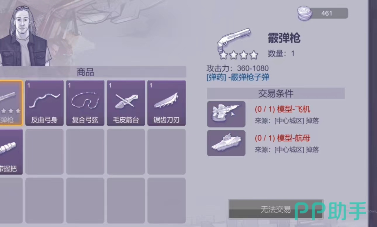 在游戏的第32天,玩家可以解锁与马叔的对话,马叔所拥有的装备是霰弹枪。玩家想获得霰弹枪必须满足交易条件也就是找到飞机和航母的模型来交换,这两个模型都位于游戏的中心城区,获得模型要完成一定的游戏任务。接下来小编给大家总结了获取方式步骤和一些注意事项: