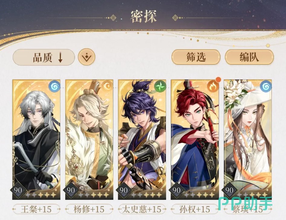 除开策略战斗,游戏的养成也是非常重要的一环,随着剧情推进会陆续解锁刘辩、傅融、袁基、左慈、孙策五位男主,完成一系列任务获得道具解锁与男主的专属剧情。