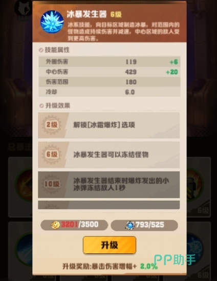 该技能不仅可持续造成伤害,还能通过升级扩大攻击范围和延长控制时间,进一步增强其战斗效能,玩家可通过解锁高级技能来增强效果,如“冰暴扩张”可增加冰暴伤害,“冰霜加农”结合了旋风加农,能为大家提供更长时间的控制和更大范围的伤害。