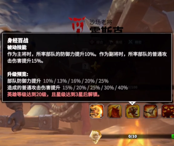 三技能作为主将时所率部队的防御力提升百分之百,作为副驾驶所率部队的普通攻击提升到15%;最后四技能,可以使得所在部队的部队容量上限提升至3000,能够有效地提高部队的容量数量。