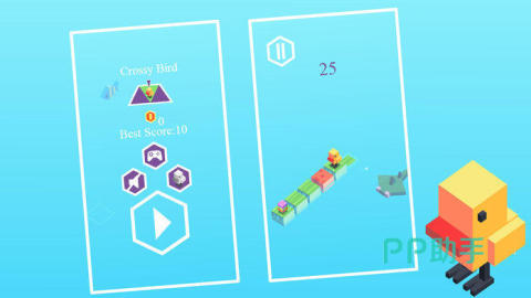 《天天过河疯狂小鸟冒险记》快来帮助这只笨笨的小鸟过河吧,这是一只不会飞的小鸟,玩家要操控的小鸟以跳跃的形式,不断的在河道中的方块上进行移动,帮助小鸟成功回到鸟妈妈的身边,游戏的玩法和跳一跳有着如出一辙的原理,每一个关卡中方块的间距以及所处的位置都是不同的。