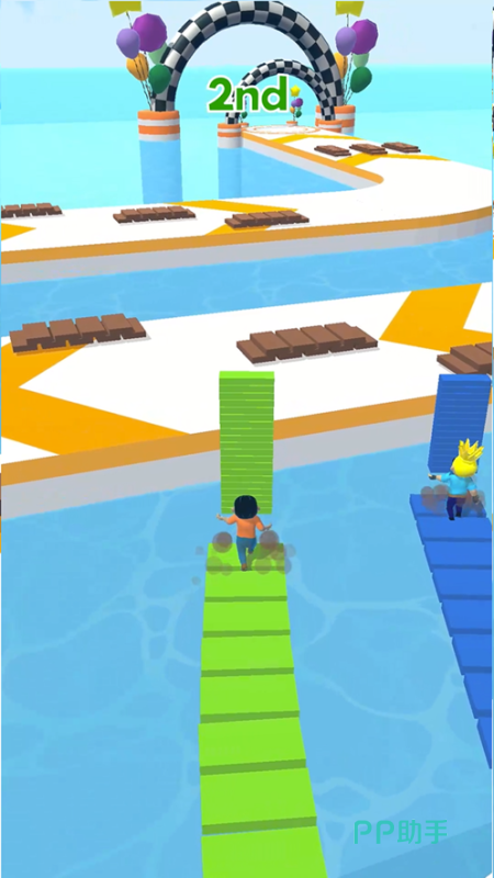 《捡板子过河》玩家们将要在奇特的水上跑道来进行过合竞速,游戏内的跑道并不是完整的,每一节都有缺陷之处,玩家要边跑边拾取跑到中的木板,并且在缺陷之处使用木板搭建小桥,顺利的过河,每一个跑道空缺之处下面都是极其危险的陷阱,不需要玩家们具备极快的奔跑速度,必须要将所有的木板都一个不漏的收集,每个跑道的设计都是不同的,所以我们搭建了桥梁也都会出现千变万化。
