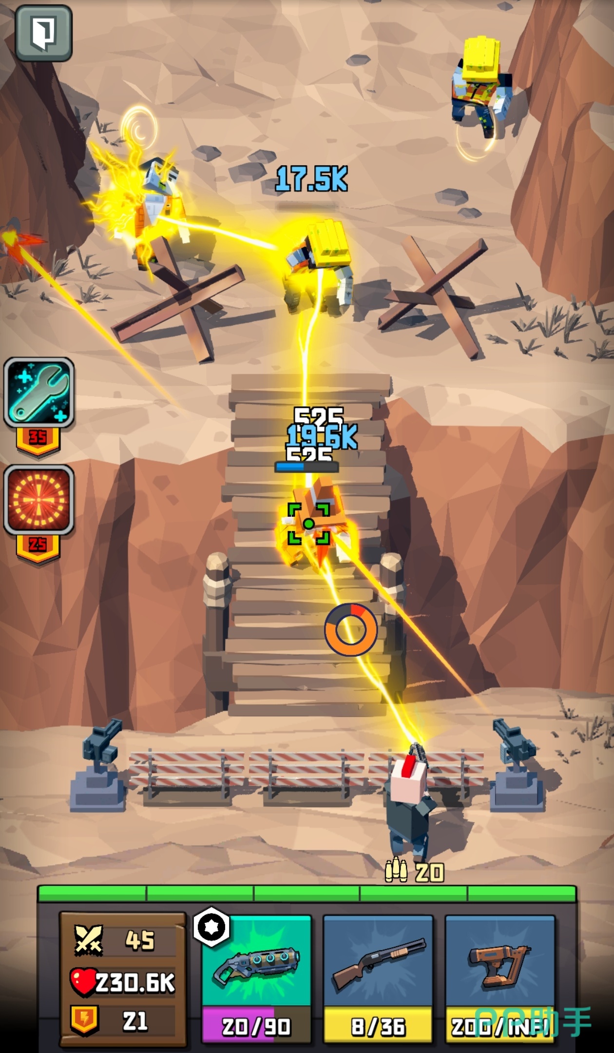 《暴走枪手》是一款放置挂机的枪手游戏。游戏中不仅有着挂机自动射击的玩法机制,还有着多中武器的轮流使用等等。另外,其中的射击方式有着自动射击以及手动射击两种方式。有趣的是,里面的武器都有着自动瞄准的机制,游戏的难度也因此减少了许多。可是暴走枪手可不是那么容易成为的,这需要玩家们持之以恒的毅力。
