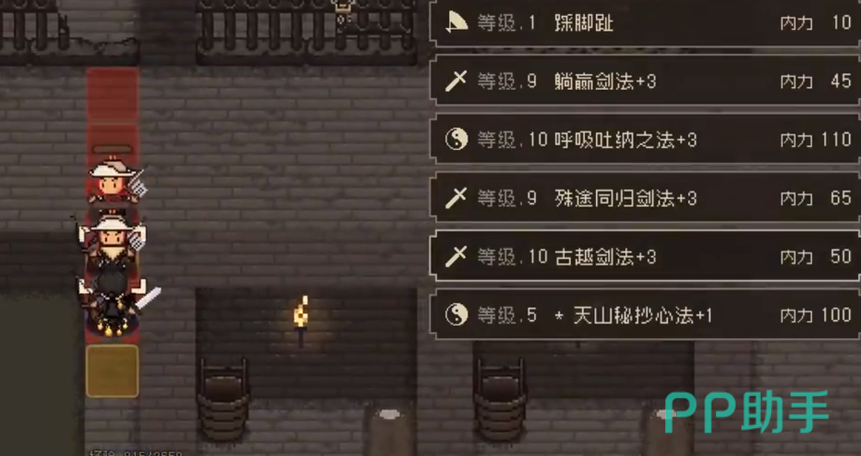躺赢剑法:这是玩家初始2选1的技能,选择走剑法,就拿这本躺赢剑法秘籍。它的修炼条件是剑法20点,满级伤害55,可以攻击直线三格的范围。