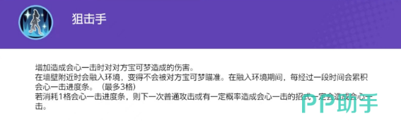 首先来看千面避役的普通攻击,它的第三次攻击会变成强化状态,并伴随着增伤与提高会心一击概率的效果。此外,被动技能“狙击手”进一步增强了会心一击的伤害。千面避役还能在墙壁附近隐身,不易被对手发现,同时积累会心能量,为接下来的强力攻击做好准备。