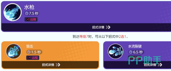 紧随其后的是远程攻击技能“水枪”,这一技能具备触发会心一击的可能。在技能升级路径中,“狙击”技能赋予千面避役精确瞄准的能力,随后发射出的水弹能够造成显著的破坏力。此外,这一技能的精准度在实战中尤为突出,使其成为远程战斗中的得力助手。而“水流破裂”则是持续射击,在短时间内连续命中同一目标可以增加对其造成的伤害,且可以在杂技移动期间使用。