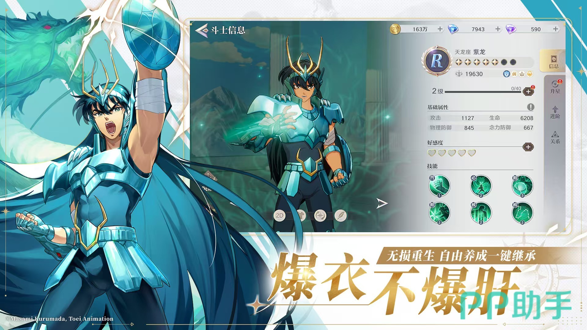 首先是在游戏战斗方面,采用的是3d即时战斗模式,这一点是为了更好地展现圣斗士们在战斗中的特点。每个角色都有自己专属的圣衣,并且圣衣的尺寸也都进行了精确还原,不仅采用了原著中的外形和尺寸,更是用3d建模技术进行了细节方面的精心设计,可以对角色带来多维提升和战力加成。在战斗过程中,每个角色的技能特效和配音也都符合原著中的人物特点。在养成方面,采用的是零损重生角色,养成资源一键继承的设定,让大家可以放心的去培养自己的圣斗士,前期可以先用于过渡,后期直接更换成核心角色,没有任何资源上的损失,这对于平民玩家来说是非常友好的。
