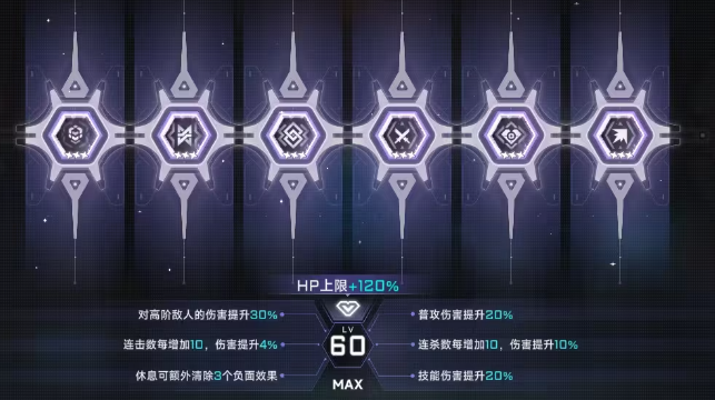 其他的两个随机属性建议选择每10连击就加4%伤害的热血沸腾和普攻伤害加20%简单粗暴,这套阵容基本以伤害为主,适合喜欢进攻的玩家,然后要推荐的第二套有能再击败敌人10秒内增加40%伤害的嗜血兴奋和休息的时候能清除负面状态的减轻负担。