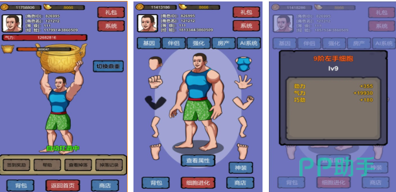 细胞进化系统这款作品的核心玩法就是不断进化,玩家要尝试利用各种方式进化自身细胞,让自己的身体素质和反应能力得到质的飞跃,各种与细胞相关的进化玩法让玩家眼花缭乱,特殊的进化、强化机制也提升了游戏的交互性,角色身体中每一处细胞强度都有所差别,针对细胞研发独特的锻炼方式才是玩家唯一要做的。