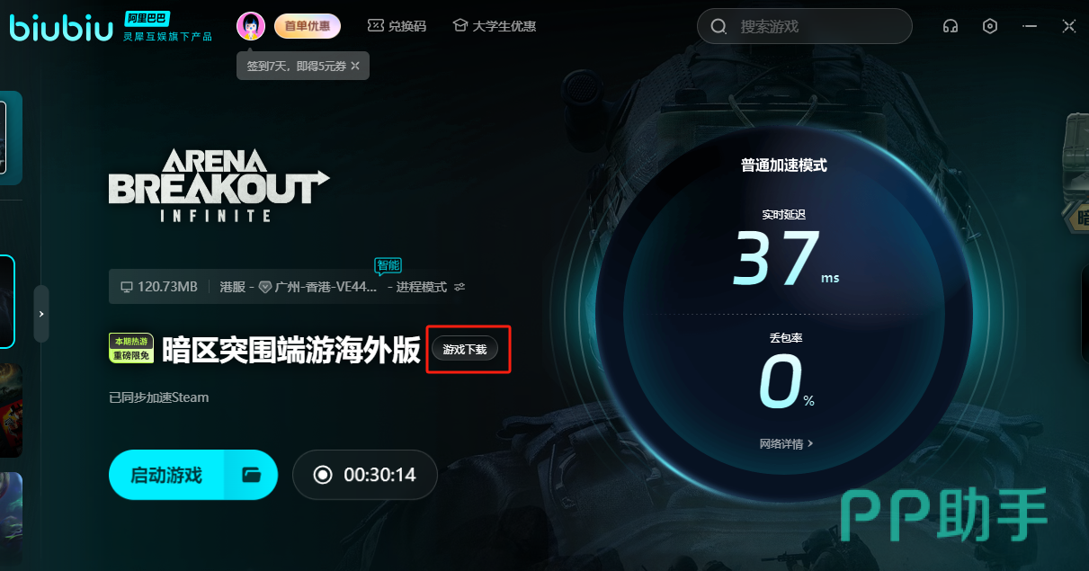 各位现在用biubiu也是赶上好时候了,首先biubiu里面,暗区突围pc版是享受首月限免加速服务的,另外新人是可以领取到96小时的免费加速时间的,在注册完新账号之后,登录就能领取免费的24小时加速时间。然后跟着老用户一起,用【biubiu不卡顿】去换额外的72小时加速时长,这样就可以享受很久的无卡顿的网络了。