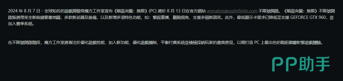 这款游戏是有着扎实的手游基础的,本身玩法就很好玩,经过一段时间的运营,也是吸引了不少的玩家。大家都很期待端游版的上线,尤其是关注暗区突围无限公测时间什么时候,等游戏开启测试的时候,争取做第一批玩到的玩家,感受到各种有趣的玩法,体会游戏的精髓。