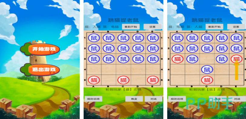 跳猫捉老鼠是款具有棋类对弈元素的猫和老鼠游戏,猫与老鼠都是由圆形棋子塑造的,玩家可操控猫咪棋子自由移动吃掉那些小老鼠棋子,移动规则毫无章法给人一种下象棋的既视感,益智又有趣味的游戏内容是这款作品的点睛之笔,画面表现精致复古再加上棋子形象的动物令人印象深刻,你也安装跳猫捉老鼠这款可玩性极高的对弈作品试试吧。