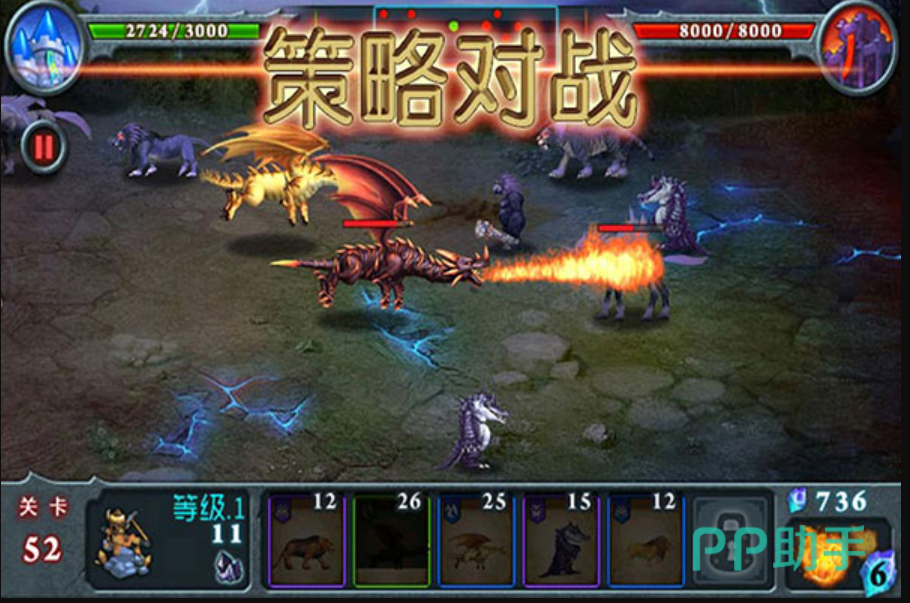 玩家周围是五条蜿蜒曲折的路径,每条路上都潜伏着蓄势待发的猛兽。玩家的目标是利用手中的卡片,巧妙地安置这些猛兽,突破重重阻碍,摧毁敌方的坚固基地。玩家需要像一名精明的指挥官,审时度势,合理分配资源。集中火力主攻一路,再以少量精锐在其余路径进行牵制,是制胜的方法。游戏还引入了法术机制,法术的释放需要珍贵的水晶作为支撑。它们能够在关键时刻扭转乾坤。