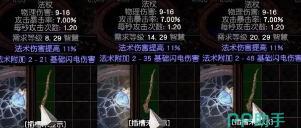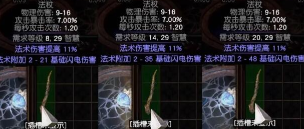 将普通的法杖跟带有技能的技能石融合在一起,就可以将武器升级,获得一个提升对应技能等级的词条,提升战斗能力。