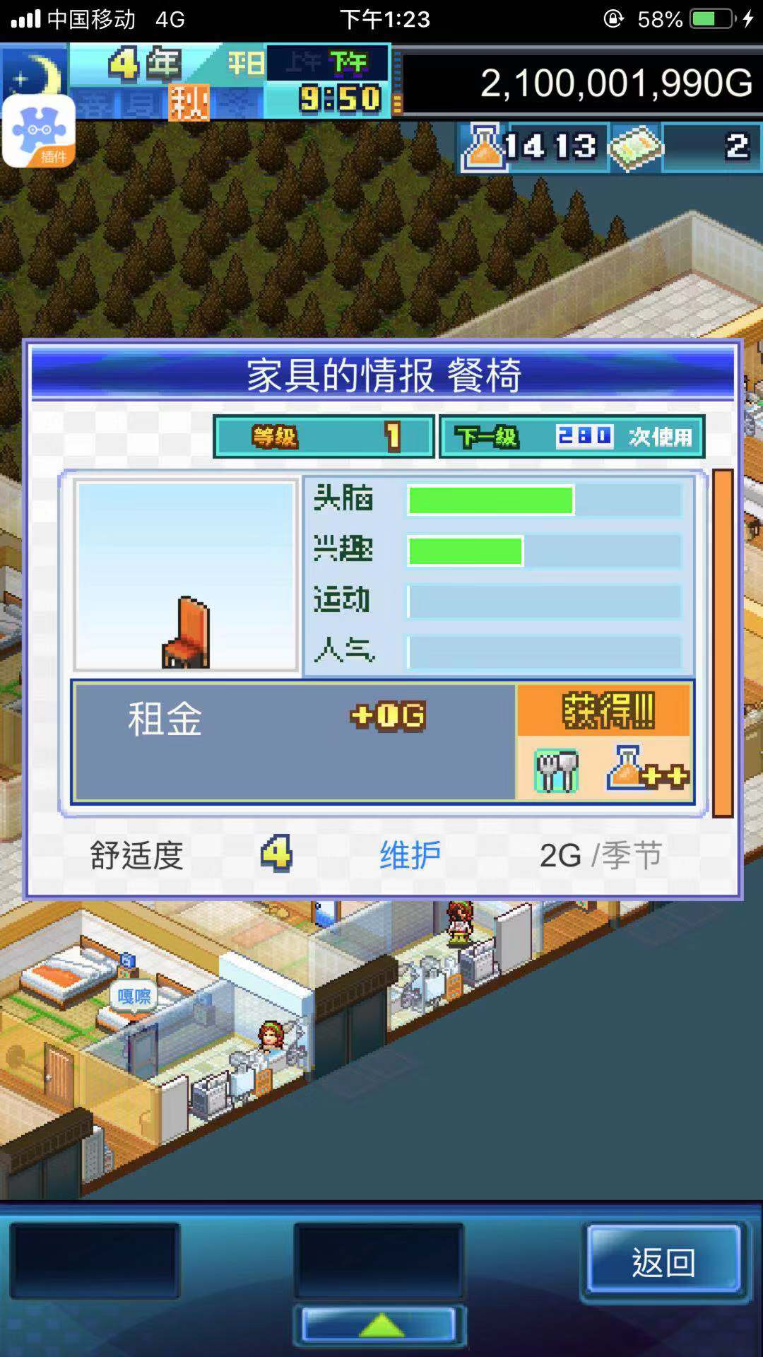 去商店购买一些增加家具舒适度的道具,把这些道具用在家具,假设我们放了6把椅子,只要其中一把椅子的舒适度上升,其他的椅子会跟着一起上升。(现在小编的房间舒适度已经到达了207)