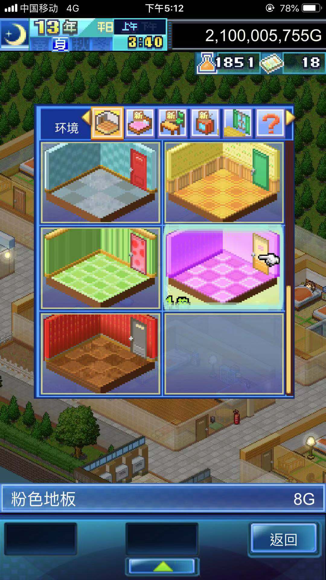 接下来可以参加世界舒适度比赛,使用同样的方法获得第一名解锁粉红地板。(世界比赛的舒适度要求很高,如果舒适度始终不够的话可以使用升级卷轴给家具升级,可以提供巨额舒适度)