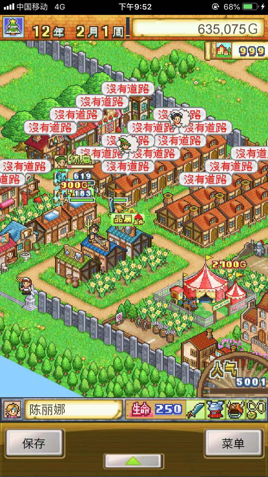 最后说一下如何判断路没修对,假设小编现在在这个十字路口建造一个房子看看会发生什么情况,可以看到下方被房子堵住的居民开始抱怨没有路了,所以通过居民的语言也可以判断哪里的路没修好。