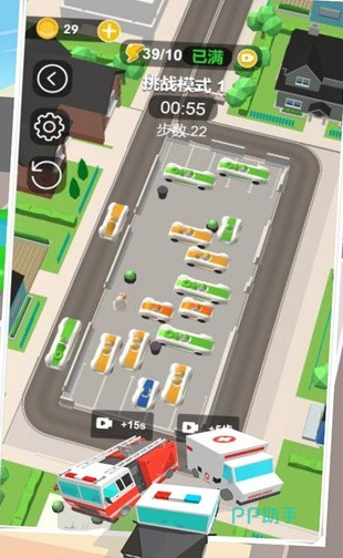 这游戏里还有个时间小助手在偷偷监督大家哦,每过一关都有时间限制,想要拿到金币奖励就得争分夺秒,快速又准确地完成任务。不过别担心虽然时间紧迫,但游戏的设计贴心没有那些让人头疼的复杂规则,大家可以全心全意地投入到解谜的乐趣中。这停车场里的每一幕都像是真实的城市交通缩影,狭窄的空间和交错的车道,一不小心就可能造成“小堵车”。