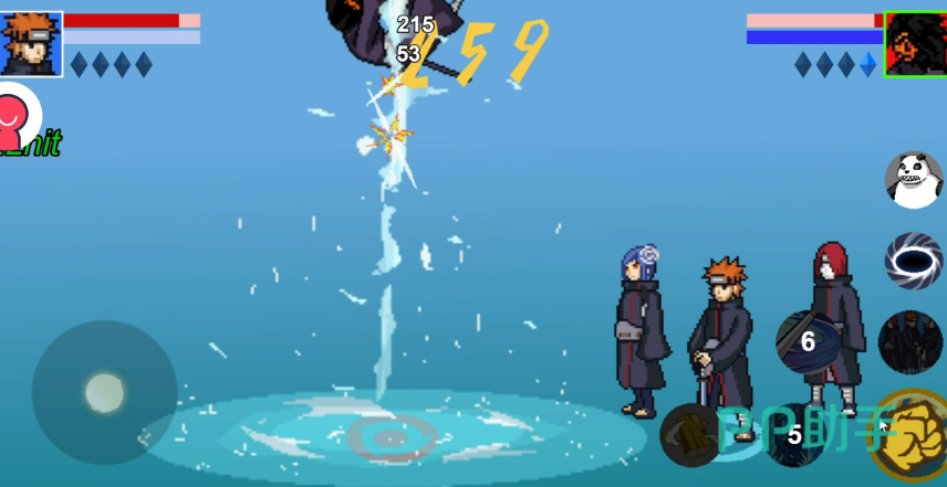这款背景为像素风格的忍者主题格斗游戏操作简单,即点即玩的设定非常适合休息时点开挑战,轻轻松松的操作体系就能让玩家感受到操控忍者战斗的快乐,一场场精彩刺激的忍者对战比赛会让人热血沸腾,角色造型和忍术设定还原度都超级高,丰富的角色选择亦给玩家带来了差异化的战斗氛围。