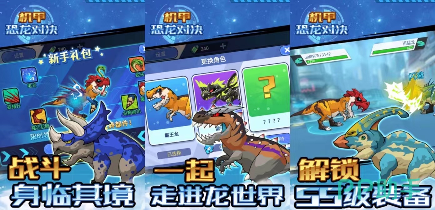 《机甲恐龙对决》充满了科幻机甲的风格,每一位角色都有着不同的战斗技能,可以为恐龙的机甲进行升级,采用回合制作战的方式在游戏中PK,需要注意作战过程中的血量,每次获胜可以获得不同的碎片,收集的碎片可以解锁更多的角色。玩家可以为恐龙的外观进行自由的搭配,在每一种模式中都能感受到超燃的打斗,恐龙通过进化会提高各种战斗水平。