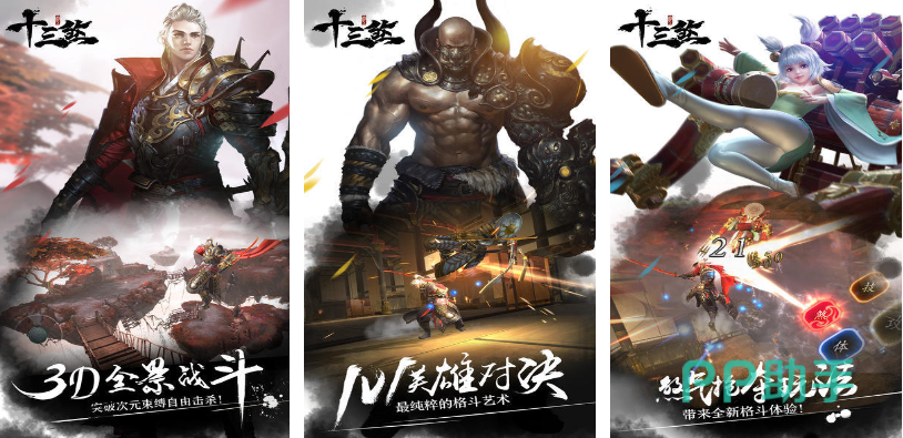 十三煞是款质量不错的武侠主题3D全景格斗类作品,3D的背景建模搭配拉风的武侠角色很有观赏性,华夏传统水墨的背景塑造也将游戏渲染的更有意境,超级公平的1V1闯关模式考验着大家对于技能的理解,QTE大招的加持无疑让武侠迷乐在其中,特效体现非常浮夸让玩家了解了侠客之间的战斗情况。