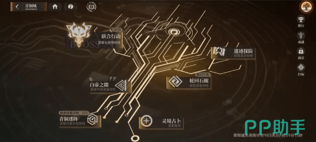 那么自己所获的奖励也就越好,在体验这个玩法时,一定要考虑自己后面的作战安排与部署,而轮回石廊,主要就是获得一些升级装备的基础材料,挑战多种不同的关卡,白帝这个玩法,类似于爬塔的玩法,可以获得书香的加成,但是对于基础属性加成比较少,玩家们需要利用队伍的形式来打击三组的小怪,还可以获得炼金的武器,之后就是青铜迷阵,这个玩法的内容还是比较丰富的,可以采用一对一的形式或者二对二三对三,玩家们可以随意的选择。