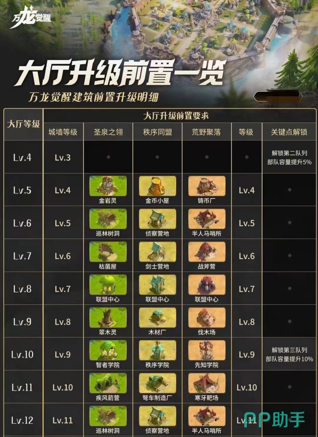 a.优先升级大厅等级,因为它是解锁更多功能和科技的前提b.初期努力在两天内将大厅等级提升至11级,以便利用更多队伍升级英雄。