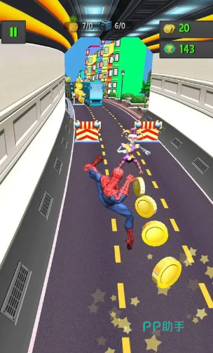 蜘蛛侠跑酷是款玩法经典的跑酷主题超级英雄手游,玩家会以蜘蛛侠的身份在复杂的街道上一路狂奔,可利用蛛丝做出一些高难度动作去躲避障碍物,沙人和毒液等经典对手也会在路线上对你进行攻击,边跑边打的跑酷玩法让大家乐在其中,跑酷场景设定在真实的纽约地图中与蜘蛛侠的主题相辅相成,你也操控帅气的蜘蛛侠不断奔跑战斗吧。