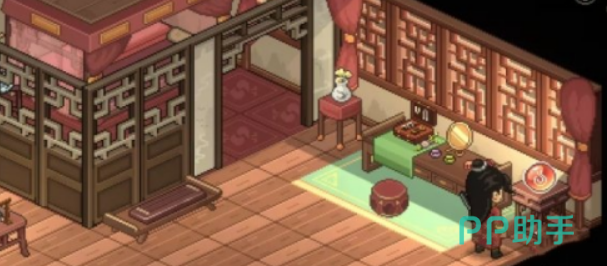 群芳馆二楼,是女子们的私密空间。里面有一间闺房,梳妆台前有着许多精致的饰品。在这些眼花缭乱的物件之上,就有一颗蓝色的宝珠引人注目,等待玩家们来摘取。