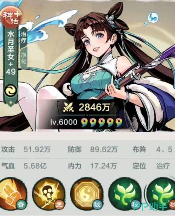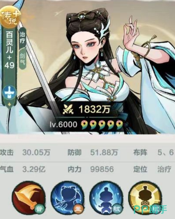 阵容中的第三个角色实则是不败剑魔,也是一个输出角色,伤害很不错。然后就是水月圣女和百灵儿。这两个角色的定位是辅助,百灵儿擅长治疗,可以治疗队友的血量,保证团队的生存能力。