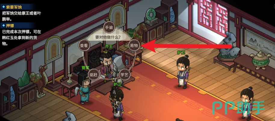 首先,进入大侠立志传的游戏界面后,玩家需要找到并点击“齐王”这个关键NPC。这位诸侯不仅威名远扬,更是游戏中易物功能的重要桥梁。