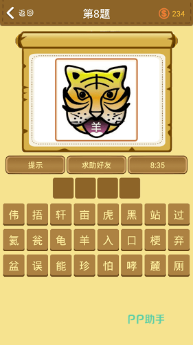 《成语拼字闯关》若玩家们对某种成语内容兴致勃勃的话,随时都能够借助游戏的搜索功能来了解相关信息,并且对每一种成语都进行了绘声绘色的解析,让玩家们能深度的去了解成语的含义,此外在个人界面玩家可以查看自己闯关的进度以及排名,在游戏中我们要根据残缺不全的成语,从若干汉子中选择出正确的字体使其拼接完整。