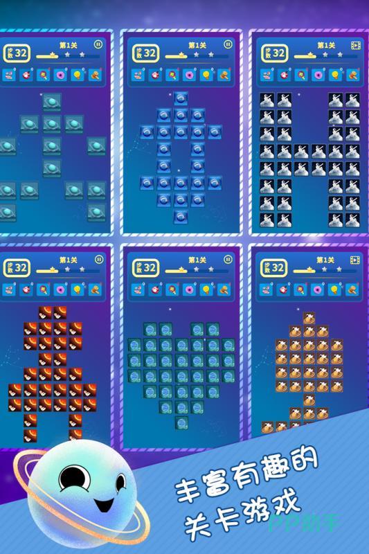 它把宇宙的各类美丽的景象与解谜的快乐杂糅到一起。游戏中许多不同色彩的星球在屏幕上跳来跳去,你的主线就是需要在限定的期间里面,迅速的找到然后就可以消除掉这些长得差不多的星球,还可以感受体会一下球互相撞击的爽感。只需要把星球相互碰撞这个点它的操作就很简单,不管是准备上班的路上还睡前的小游戏,都能迅速开启一场星际冒险。