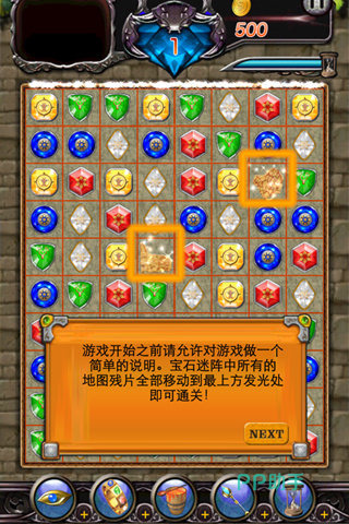 这款游戏它能够让大家在玩碰撞消除的时候,也可以同时能够有寻宝的快乐。游戏的颜色还是挺鲜艳的,一眼吸引到大家的注视,每颗宝石都在眼前闪着亮光。游戏的操作手法只需要只需大家轻轻一点,把一样的宝石变成直线就算通关,就能够感受一下消除的快感,同时也能够打开通往王族宝藏的秘密通道。