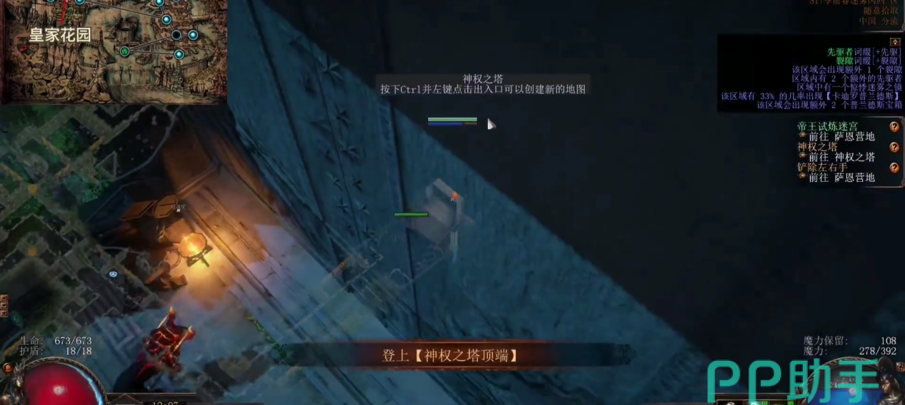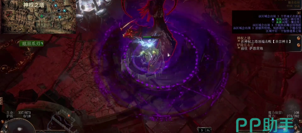 玩家需再次利用图书馆的传送点前往皇家花园,在那里面临升华试炼的挑战,并寻找通往神权之塔的上门的锁。激活锁后,神权之塔的大门缓缓开启,神权之塔内危机四伏,玩家需穿越多个楼层,在塔顶的则是最终boss圣宗神主和奇术之灵神主。我们击败奇术之灵神主后将与达拉夫人进行对话,从而开启水道遗迹的大门。进入水道遗迹后,玩家的目标直指统治者之殿,至此第三章任务也就是流放之路命运之语完美完成。