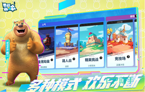 这款与熊出没联动的竞技游戏各方面设计都非常奇葩,只需三秒就能快速上手,简单易玩也很上头。很多奇葩英雄闪亮登场,有较多角色化身成为战斗家是你无法想象的,比如熊出没当中的吉吉国王以及熊大等等。他们共同集结在一起,在奇葩大陆展开无厘头爆笑大乱斗,这款moba游戏有pvp模式,支持5v5对战。