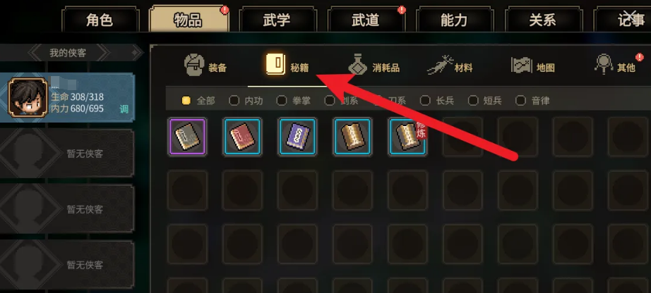 修炼“降霜拳法”的第一步,是进入游戏背包界面。在这里,你会看到一个名为【秘籍】的选项。点击它,你会发现各类武功秘籍陈列其中,如同古代武林高手的珍藏宝典。