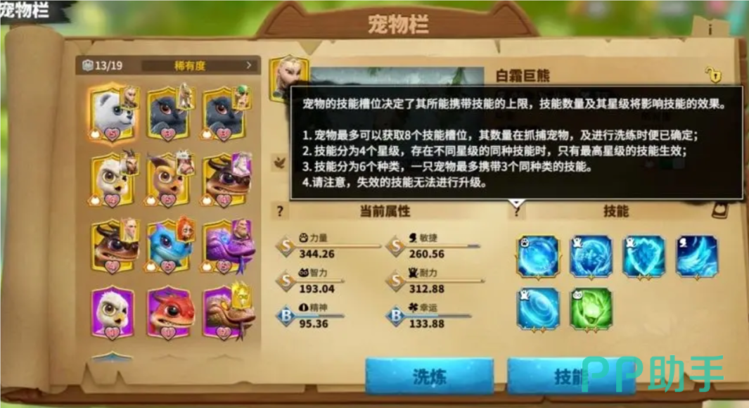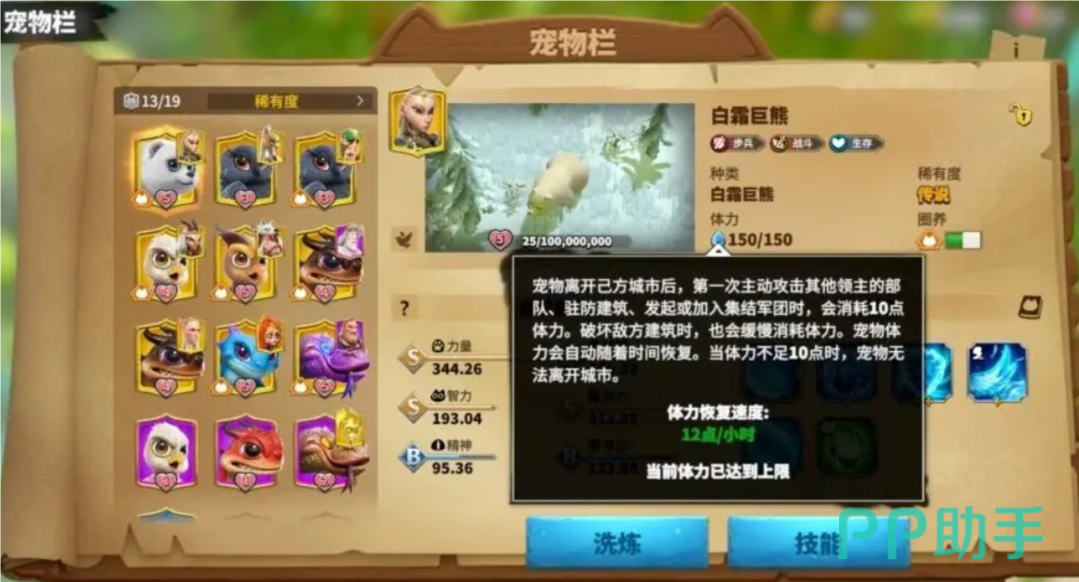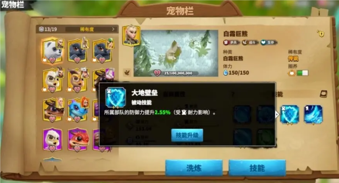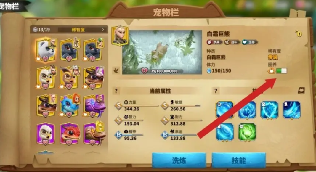 在属性方面,白霜巨熊主要洗练的属性为力量。力量属性可以提升白熊的血量和攻击能力,非常符合其作为步兵宠物的特性。通过合理的属性培养,可以进一步提升白霜巨熊的战斗效能。