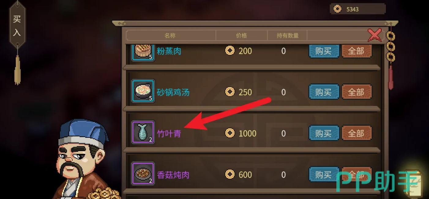 在掌柜的商铺界面中,你可以浏览到各式各样的商品,其中就包括了我们所寻找的竹叶青。这东西通常价格不菲,但为了提升自己的战斗力和生存能力,投资是值得的。