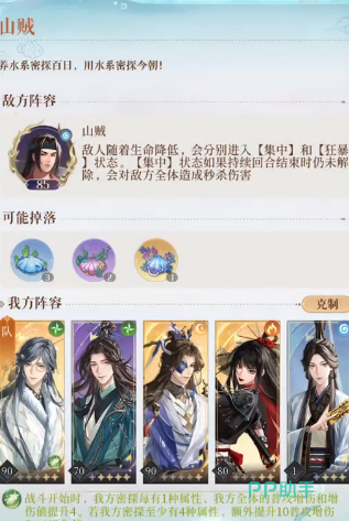 代号鸢海底捞捞山贼这一关小伙伴们主要遇到的问题是水图,在山贼的生命里,值降低的时候会进入狂暴和集中状态。在这个机制中最重要的就是集中状态,如果玩家在回合结束之时还没有将山贼打败,集中能力就会触发将所有角色秒杀。