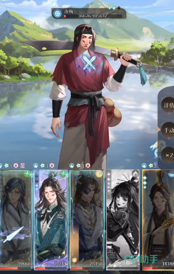 山贼在血量降低的时候会给玩家带来爆发式的伤害,这个时候是要进行回血和加盾的。张邈、董奉能保证整体队伍的生命值和能力,至少在前几个回合的时候保证队伍中角色的存活情况。在游戏中不断的消耗敌人的血量,最后用甄宓的大招伤害一次性解决。
