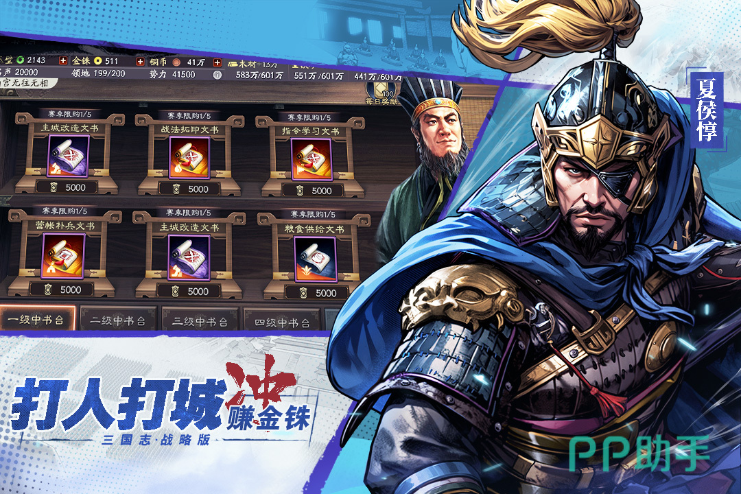 攻城战的战役数量较多,玩家可以操控夏侯惇等角色在高平陵之变中大展身手,也可以在各大将军的带领下在北伐中原以及三分归义等多个环节中进行PK。在其他战略玩法上,玩家可以获得粮食供给文书以及主城改造文书,并且在不同级别的中书台可以解锁更多的关于战略方面的书籍。