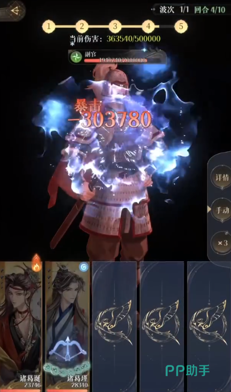 1、 霹雳弦惊。诸葛瑾每使用三次普攻,进入满弓状态,提升翻倍暴击率与暴击的伤害。