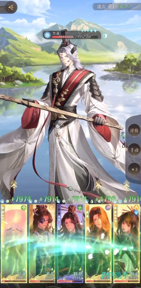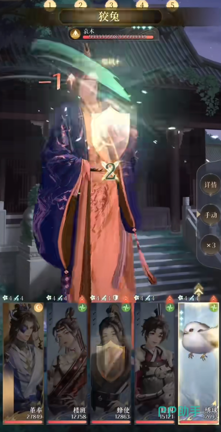 2、祛风。回合初,为全体队友恢复hp值,恢复量相当于董奉的50%攻击力。如果队友被沉默、麻痹,则随机清除一名的异常效果,优先清除董奉自身。