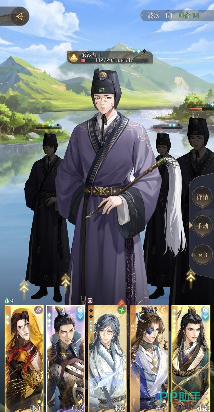 此外董奉还可以刷隐藏成就:死病无药医。一场战斗中有3个密探因为【赈济】的效果流失生命导致死亡。在三期兰台的奉诏讨伐,选择风属性的一级蓝卡密探,就能轻松完成。
