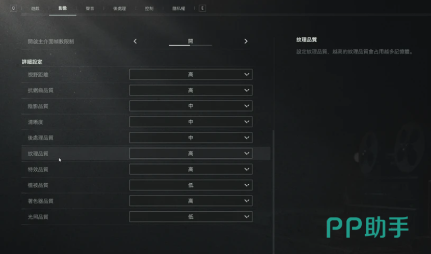 首先,在画质选项中找到“解析度取样类型”,根据显卡类型进行选择:如果使用N卡,选择“DLSS”;如果使用A卡,选择“FSR”,这样可以显著提升帧率。取样画质建议设置为中等或高。