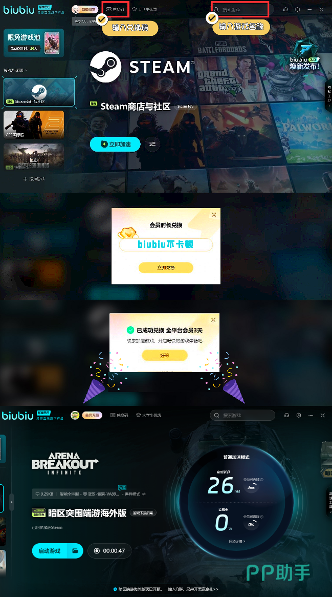 现在新用户可得24h的免费加速,而作为平台用户,只需去输入【biubiu不卡顿】即可得72h的加速,新用户叠加起来就是96h哦。另外,暗区突围无限首月限免加速哦~