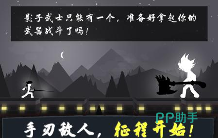 在极简的黑白画风中,玩家操控火柴人与敌人进行战斗从而得到影子武士的称号。武器的使用可以自由选择,玩家优先使用长剑以及斧头造成直接的近战攻击。操作较为简单,左右两个按键即为攻击键,玩家在胜利后可获得夺金腰带,并且还有轰轰烈烈的颁奖仪式以及等级称号。