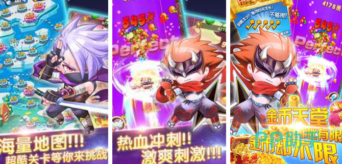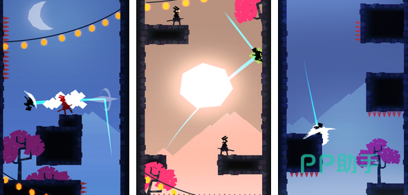 闯关的色彩以纯色为主,玩家操控武士闯关的同时需要收获金币。操作以跳跃为主,玩家需要瞄准空地操控武士进行跳跃。障碍物以钉子为主,它们会随机出现在不同的路况中阻碍玩家的前进。在其他元素上,玩家可以欣赏到紫色和粉红色的小花,这可以释放玩家一定的压力。